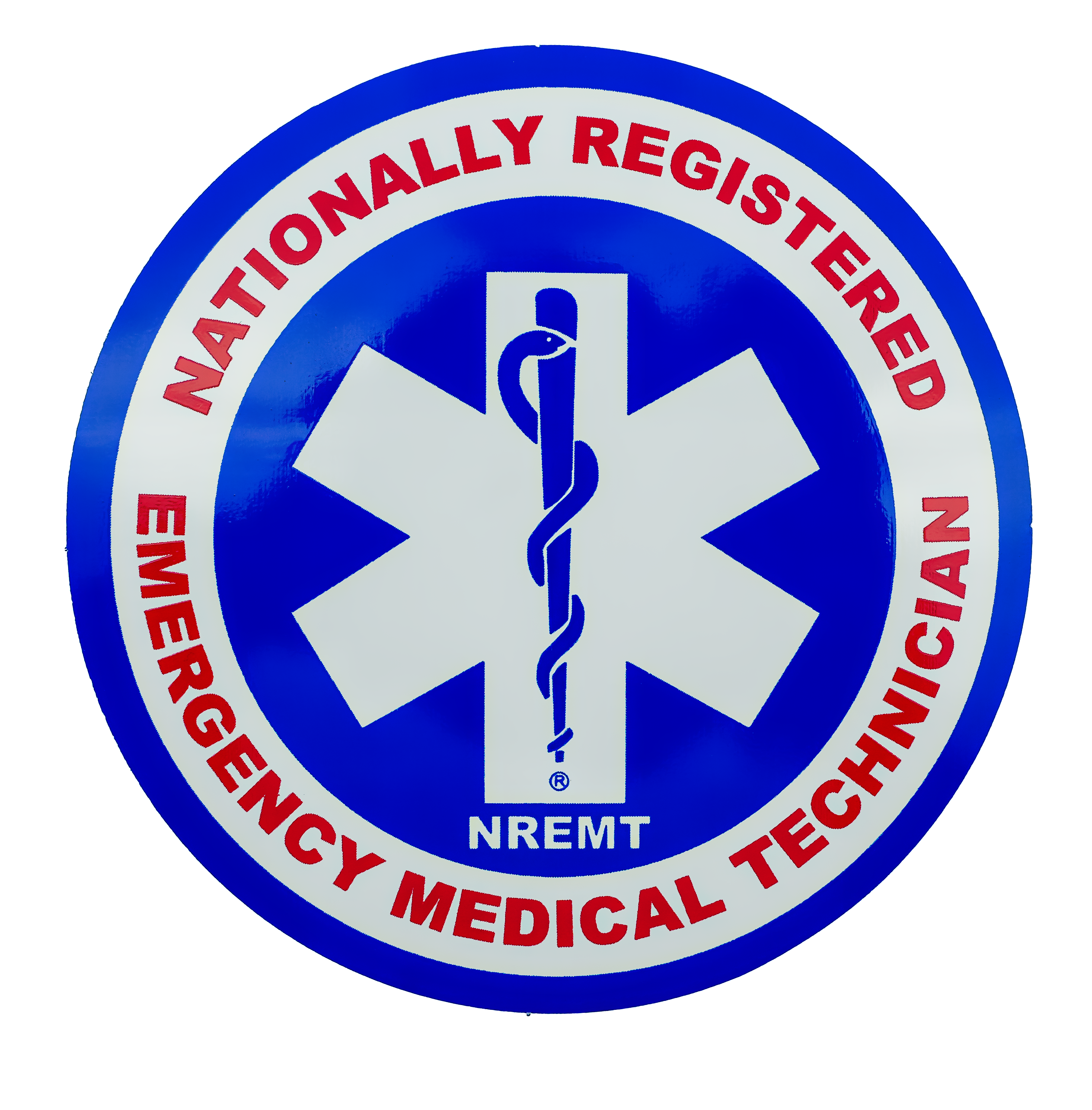 Official EMT decal of the National Registry of EMTs; blue, white, and red 3.5" peel-off sticker with Star of Life